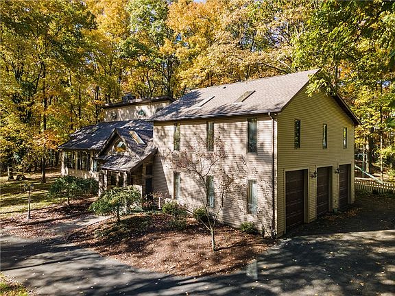 Escape to your private oasis just 13 minutes from downtown Indiana! Tucked away among lush forest, this exceptional 6-bedroom, 6-bathroom home offers a blend of contemporary elegance and rustic charm. Enjoy the convenience of free gas, passive solar, and easy access to Routes 119, 422, and 22 via the nearby bypass. Step inside to discover soaring cathedral ceilings and a breathtaking two-sided natural stone fireplace that warms both the living room and kitchen. The wall of windows showcases uninterrupted views of nature’s ever-changing beauty. A spacious three-season room opens to a multi-tiered deck with a firepit, perfect for entertaining or relaxing under the stars. The property boasts both a 3-bay attached garage and a 3-bay detached garage, along with a shed. Experience the perfect blend of privacy and accessibility in this custom-built home.