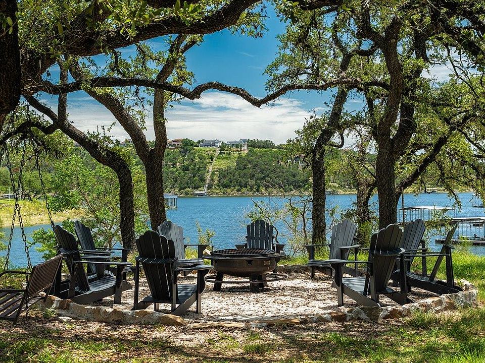 A rare and exceptional opportunity awaits at this beautifully updated lakefront retreat on Lake Travis, located in a private enclave in Spicewood. Set on a serene 1.1-acre lot surrounded by mature trees, this stunning home offers unobstructed panoramic lake views, modern luxury, and incredible short-term rental potential. Currently operating as a highly successful VRBO, this property generates up to $160K/year in income and comes STR-ready with documents available—contact agent for details. Whether you're looking for a high-performing investment, a luxurious second home, or your dream primary residence, this home delivers on all fronts. Thoughtfully remodeled throughout, the home features exposed beams, custom metal railings, detailed tilework, and modern finishes that blend timeless charm with updated style. The open-concept main floor offers a spacious living area, elegant dining space, and a beautifully appointed kitchen with sliding glass doors that open to expansive lake views. The main level also includes a private primary suite and a full bathroom. Downstairs offers a second living area, three generously sized bedrooms, another full bath, and an oversized laundry room with exceptional storage. Multiple levels of decking provide the perfect setting for outdoor entertaining or simply relaxing while taking in the stunning surroundings. Additional upgrades include a new septic system, private well, and professional landscaping. Located within the highly acclaimed Lake Travis Independent School District, serving West Cypress Hills Elementary, Lake Travis Middle School, and Lake Travis High School—offering exceptional educational opportunities for families. Don’t miss your chance to own a lakefront gem with high ROI, unmatched views, and the flexibility to live, vacation, or invest—schedule your private showing today!