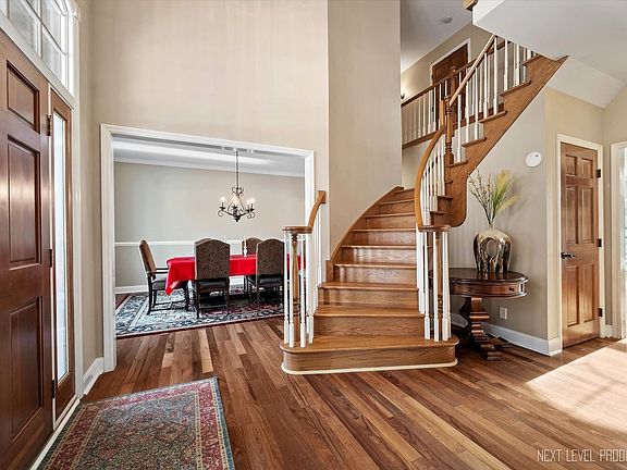 Beautifully updated custom built 3800 square foot home is ready for its next family! Welcoming two story foyer with curved split staircase & Brazilian cherry hardwood floors! Formal living & dining rooms with crown molding. Tastefully remodeled sunlit eat-in kitchen with all JennAir SS appliances, breakfast bar island, quartz counters & abundant cabinets open to the family room with attractive masonry fireplace. 1st floor den/office/bedroom#5 near full bath could easily be an in-law suite. First floor laundry with cabinets, utility sink & exterior door. Master bedroom suite with tray ceiling has 22x9 walk-in closet & 15x14 turret sitting room. Newly renovated luxury vaulted bathroom has heated floors, heated towel racks, double sinks, soaking tub & big walk-in shower with full body spray. Generous bedroom #2 with private brand new full bath plus 2 more bedrooms & an additional hall bath complete the second floor. Spacious maintenance free trex deck for outdoor entertaining. Huge unfinished basement and 3 car garage. So many new quality amenities & upgrades including: Master bath '24, kitchen '20, Roof '22, Sierra Pacific windows '19, dual HVAC & humidifier '23, Hardie board exterior '18, Brazilian cherry hardwood floors 1st floor & master '20, H2O heater '25, softener '23. Great location close to STC East HS, Wredling middle school, parks, shopping, dining, bike trails, Fox River, award winning park district & all that downtown St. Charles has to offer! Move right in and enjoy everything this fantastic home and neighborhood has to offer!