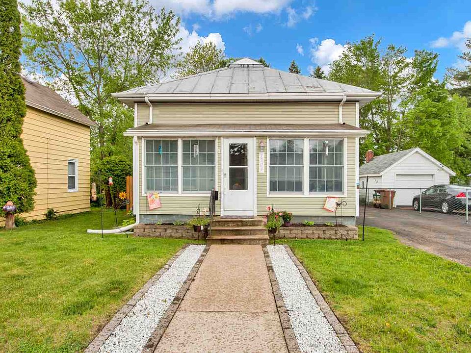 Classic charmer with an open concept design!! Enjoy this convenient in-town location in this 2 bedroom and 1 bathroom estate. A detached 1 stall garage and garden shed installed in 2019 add to the fantastic privacy in the backyard. Let's not forget about the massive raised deck for entertaining. Within the home you will find a modern feel with tons of natural light through the replacement vinyl windows. Updated kitchen with mosaic backsplash and open design from the kitchen to living room with laminate flooring. Feel the warmth in the large front sunroom with plenty of additional storage. The master bedroom contains a semi-walk-in closet with new closet organizer and modern paint colors. Enjoy a large and updated full bathroom with tile surround. Additional seller updates include: garage door opener in 2016, white blinds throughout in 2016, installation of tile drain system with new sump pump and battery backup in basement in 2018 and new refrigerator in 2019. Security system and cameras not included.
