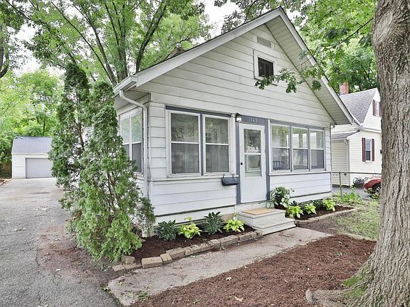 Adorable 1920's cottage! Newer roof, newer HVAC, all appliances remain and are 4 years old. Three season/front porch welcomes you, wood floors throughout the living areas and bedrooms. Kitchen and full bath have been remodeled with high end finishes. Light filled kitchen with granite countertops overlooks small covered back porch and fenced-in yard. Raised bed for your future garden. Very large 2+ car garage provides plenty of room for your bicycle, yard tools, and more. Basement has an additional room for an office or rec room.
