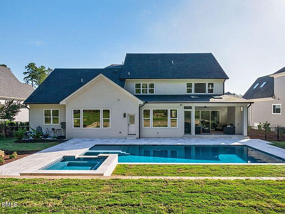 One of the last opportunities in popular Montvale located in West Cary. Parade of Homes 2025 winner. Custom, high end luxury finishes built by Upright Builders on the American Tobacco Trail. This home has it all! Main floor living flooded with light. Beautiful back yard oasis includes in ground pool and spa & conveniently located pool bath has outdoor access, retractable screen back porch with fireplace. Chefs' kitchen, large island, scullery/prep kitchen both are beautifully appointed with state-of-the-art appliances, 2 dishwashers, 2 refrigerators, Wolf gas range and an abundance of cabinets. Primary bedroom, guest 'ensuite and elegant study are located on main floor. The Primary suite is appointed with cathedral ceiling, large windows, overlooking pool, an elegant bath; oversized shower & large Walkin closet is connected to laundry and mudroom. Open floor plan perfect for entertaining. Large dining room has cathedral ceiling and an abundance of windows. Do not miss seeing this one-of-a-kind home. This is truly a rare opportunity. Move in by the Holiday!