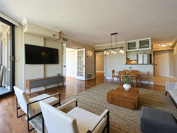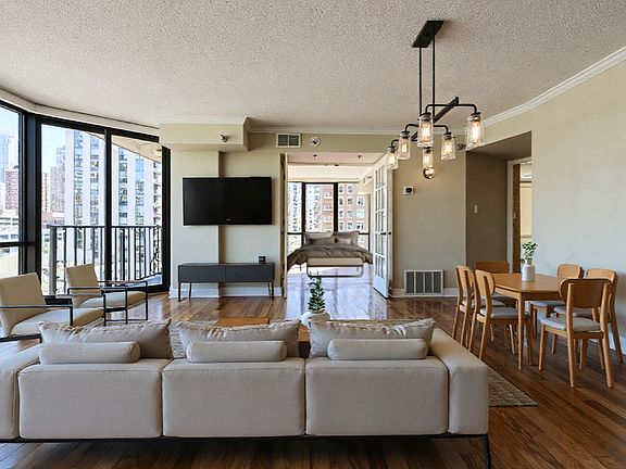 Experience elevated city living in this high-floor 2 bed / 2 bathroom Old Town apartment with breathtaking east and south views of Lake Michigan and the Chicago skyline. Floor-to-ceiling windows fill the space with natural sunlight throughout the home while the private balcony showcases the breathtaking views. Motorized shades provide effortless comfort and privacy at the touch of a button. Inside, the open-concept layout is designed for both style and function. Hardwood flooring runs throughout, anchored by a cozy fireplace. The spacious kitchen features a breakfast bar, granite countertops, stainless steel appliances, and ample storage. Both bedrooms offer private ENSUITE BATHROOMS with heated floors, and in-unit laundry ensures daily convenience. Building amenities include 24-hour door staff, a rooftop patio with wrap around views, and an attached garage with one parking space conveniently located next to the elevator. Located in the heart of Old Town, you'll be just steps from a wide range of boutique shopping and fitness classes, acclaimed dining, lively nightlife, and grocery stores, with multiple public transit options nearby for easy access to the entire city. A rare blend of luxury finishes, modern conveniences, and unbeatable location-this residence is the perfect place to call home.