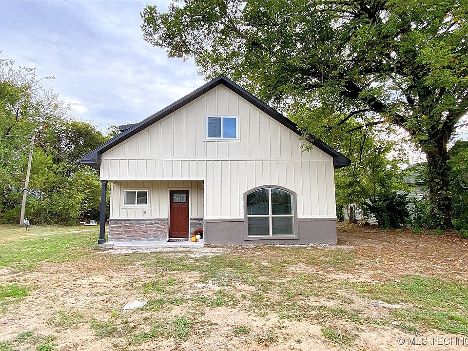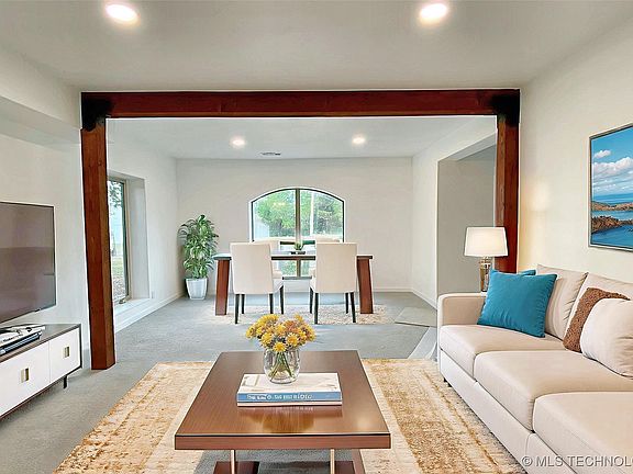 Welcome to this beautifully redesigned 2-bedroom, 1.5-bath home where comfort meets craftsmanship. This residence has been completely reimagined, with everything new except for the original slab and first level block walls - making it essentially a new build while maintaining select architectural elements that add character. Step inside and feel your daily stresses melt away in this thoughtfully renovated two-level sanctuary. The heart of this home is its one-of-a-kind kitchen, featuring unique shelves made from wood sourced right off the property, each piece telling its own story, complemented by elegant granite countertops and custom cabinetry throughout. Exposed wooden beams throughout the lower level create an inviting warmth that perfectly balances the modern amenities. The second level presents an adaptable flex space that opens up endless possibilities - create a cozy family room for relaxation or easily add a wall to transform it into an additional bedroom, allowing you to customize the space to your specific needs. Enjoy Oklahoma living at its finest with two covered outdoor spaces - perfect for morning coffee or evening relaxation. The generous backyard offers endless possibilities for gardening, entertaining, or creating your own outdoor oasis. This home is more than just a living space—it's a place where comfort meets style, designed for creating lasting memories.