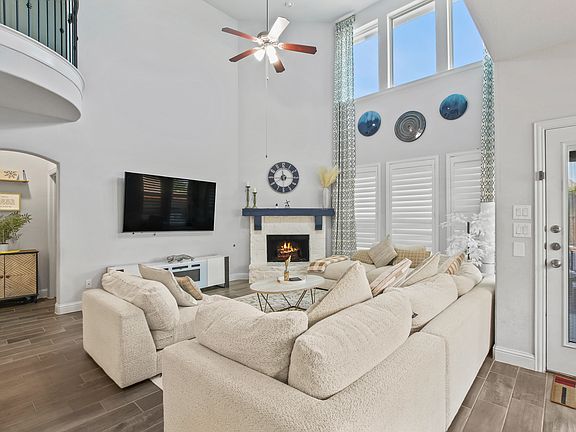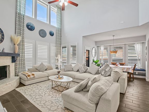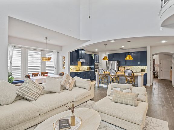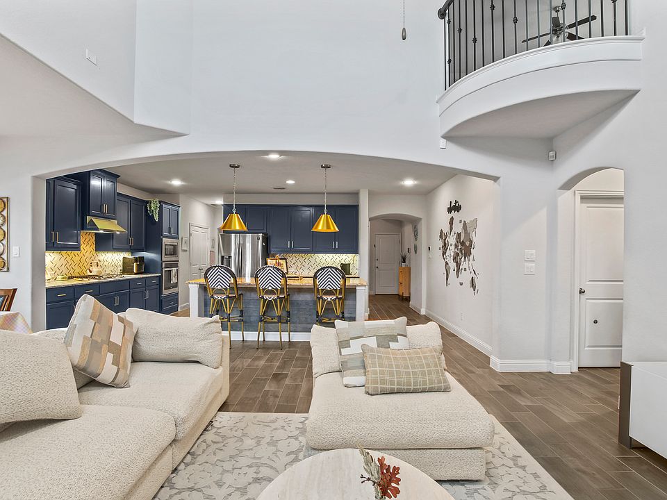 Welcome to this beautifully designed 4 Bedroom, 4 Full-Bath home located in the heart of the sought-after Light Farms community. This 4 Bedroom, 4 Full Bath home offers exceptional living and entertaining space. A dedicated office, large loft and media room provide flexibility for work or play. The open floor plan is filled with natural light and anchored by a striking spiral staircase. The chef's kitchen features SS appliances, an oversized upgraded island, and stylish lighting, while a formal dining room is perfect for gatherings. Step outside to a covered patio with a built-in outdoor kitchen, ideal for year-round grilling and relaxing. Residents enjoy an array of neighborhood amenities including on-site elementary school, amenity parks, scenic walking trails, resort-style pools, fitness center, pickleball courts, and a community restaurant all just steps from your door!