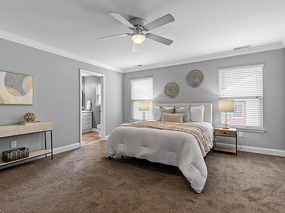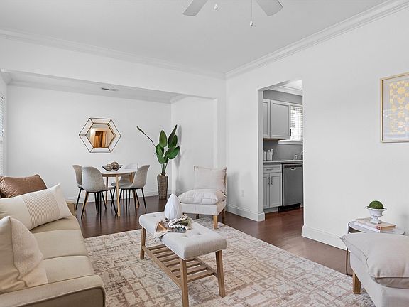 Step inside to find elegant crown molding, and a fresh, neutral color palette that enhances the home's light and open feel. The spacious living room flows seamlessly into the dining area, creating a welcoming layout that's ideal for everyday living or entertaining guests.