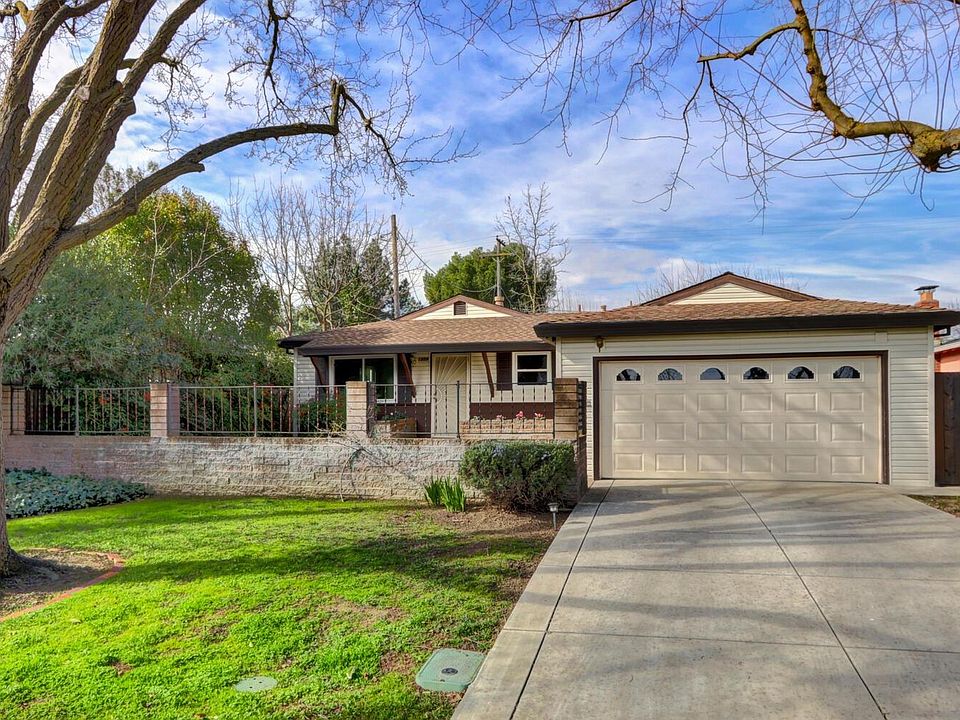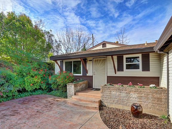 Stylish 3 bedroom, 2 bath single story home in a great location. Spacious updated kitchen with tons of storage, gas range & the fridge stays Skylight in the dining area brings in wonderful natural light, beautiful wood floors, newer interior doors & dual pane windows. Master bedroom has an ensuite bathroom. Hall bathroom has been updated with tile flooring, tile shower surround above the bathtub & an elegant pedestal sink. Entertain family and friends on the stamped concrete patio in the large backyard or just relax and enjoy the neighborhood from the front courtyard, the choice is yours