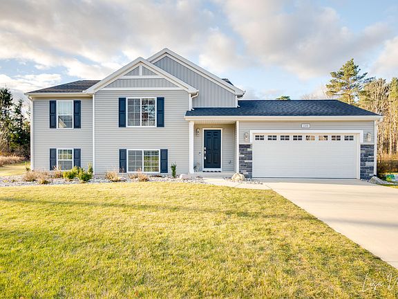Welcome to 1309 Waterpoint Court, Whitehall, MI—an exquisite newer build Bi-Level, completed in 2022. This stunning four-bedroom, 2.5-bath home offers modern living with thoughtful design. The spacious layout includes an open-concept main floor, perfect for entertaining, and a lower-level walkout with 23 x 21 family room for added versatility.