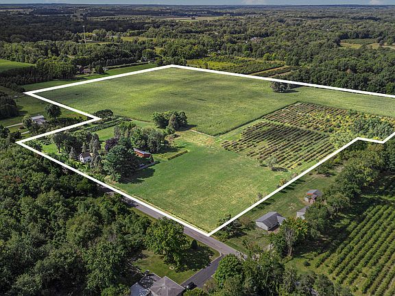 Large barn, (60x20), for equipment storage. Includes fruit trees, four rows of Concords, approximately 5 acres of blueberries, hay fields, and 25 acres of tillable land.