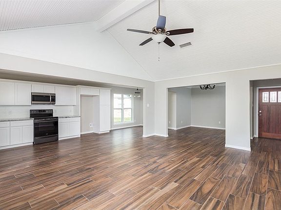 This home has been given beautiful new life! Step into this huge open living room beneath a vaulted ceiling with wooden trim detail that also features a new fireplace. The kitchen features stainless Fridgidaire Gallery Series appliances, granite countertops, and subway tile backsplash. Wood-look ceramic tile throughout and carpet in the bedrooms. The master suite features double sink vanity, double closets, and a jetted tub/shower combo with subway tile floor to ceiling! Comes see all the reasons to love this home!