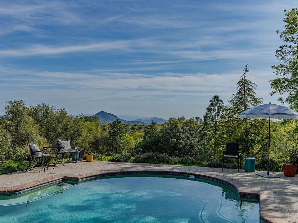 If you've been searching for privacy, modern comfort, and country charm, this 5-acre retreat is the perfect fit. Located at the end of a quiet cul-de-sac with paved access, the property offers space, serenity, and upgraded systems just minutes from Sutter Creek, Jackson, and Pine Grove. High-speed internet, a whole-house fan, newer HVAC, and a central vacuum system make daily living easy and efficient. A tree-lined driveway leads to a welcoming residence featuring a functional floor plan, hardwood floors, and oversized windows that fill the home with natural light. The formal living and dining rooms provide inviting spaces to gather, while the cozy family room with a brick fireplace and built-ins is ideal for relaxing. The kitchen overlooks sunrise views and the peaceful backyard, offering ample counter space, a center island, wet bar, and a huge walk-in pantry. Step outside to enjoy views of Butte Mountain, a sparkling pool with a newer filtration system, and a patio designed for outdoor living. The spacious primary suite includes new carpet, two large closets, and an updated bath with a soaking tub. With abundant storage, an oversized garage, and complete privacy with no visible neighbors, this home offers exceptional country living with modern conveniences.