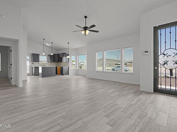 Come tour this beautiful La Maresme floorplan, perfectly located on a corner lot! Featuring 4 bedrooms, 2 bathrooms, and a 2-car garage, this home offers spacious living with 9-12 ft ceilings, an open-concept kitchen, granite countertops, tile backsplash, modern fixtures, and stainless steel appliances. The Owner's Suite boasts high ceilings, large windows for natural light, a walk-in closet, and a private ensuite bath. All bedrooms offer soft plush carpet, while the main living areas feature elegant ceramic tile for easy maintenance and luxury appeal. Built by El Paso's leading high-performance builder with a 5-Star Energy Rating, including tankless water heater, cellulose insulation, refrigerated air, central heating, and security system wiring. Multiple floor plans available—inventory changes daily, so call today!