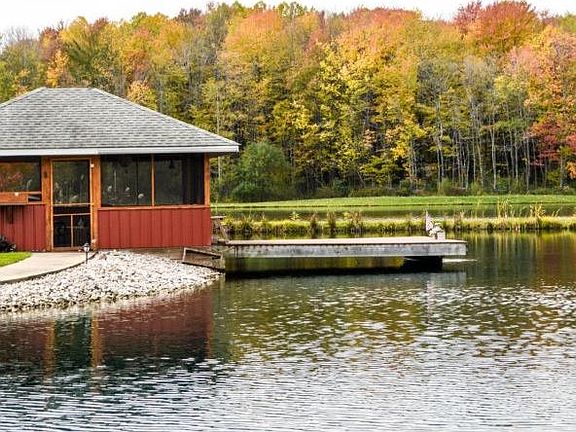 A little piece of Heaven describes this Cape Cod with amazing views and a park like setting! Not only does this 3 bedroom 3 1/2 bath home offer spacious rooms, it brings quality and shows off the attention that was paid to the details! Enjoy the radiant heat under the hard surface floors that also extends into the garage. The first floor en-suite is complete with an eat-in kitchen that showcases an abundance of cabinets for plenty of storage and also leads to a beautiful stamped concrete patio that overlooks the pristine backyard! The great room shows off its vaulted ceiling and knotty pine wood trim throughout that adds character and warmth to the home. The full partially finished basement adds more space and possibilities. With an oversized 2 car garage, storage is not an issue! Make the most out of outdoor living while walking the sidewalk along the pond to the 18 x 16 pavilion (that is supplied with electric) and enjoy the peace and tranquility that the water has to offer! Duel fuel as well!!! The outdoor wood burner is very efficient and also has a propane back up OR simply just use the propane! Make this paradise property your own!