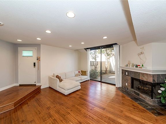 It is a two-story townhouse located on the first floor and is located at the corner of the unit, providing privacy. Opening to the front, the bright home with high ceilings and skylights features a spacious living room with a beautiful fireplace and hardwood floors downstairs. When you open the sliding door next to the dining room, there is a patio in a neatly organized concrete yard. The kitchen has granite counters and a microwave and dishwasher. The dining room connected to the spacious living room and kitchen is another convenience. There is a pantry and laundry room next to the kitchen. There is a sunroof on the stairs leading to the second floor, making the house much brighter. Upstairs are two large rooms, each bathroom with granite countertops and the master bathroom with a double sink. The garage, separate from the house, has space for two cars and has built-in shelves. Featuring two swimming pools, the Le Parc community is conveniently located close to shopping areas and highway access.