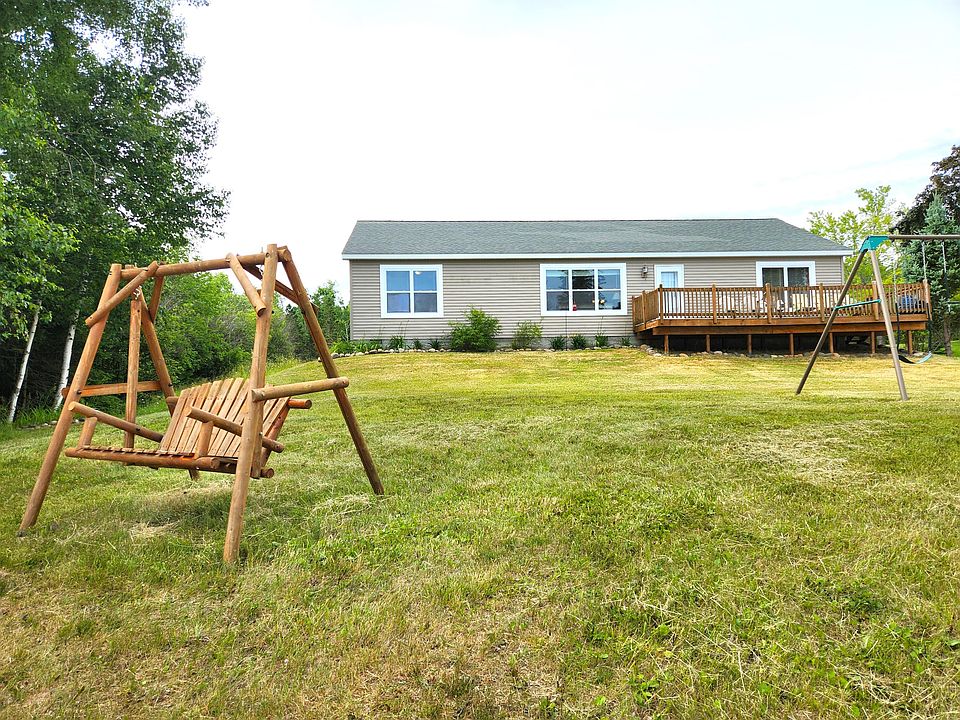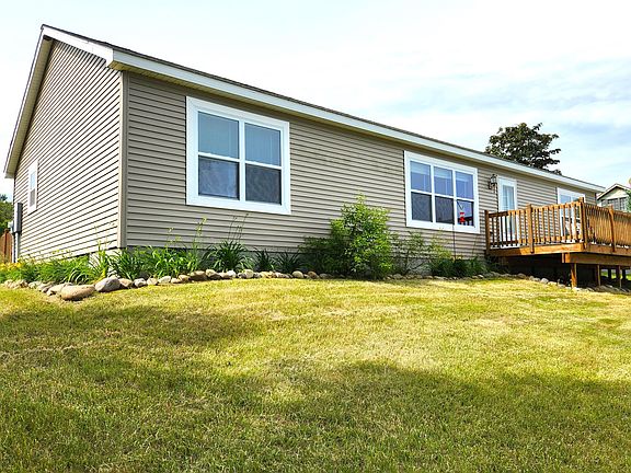 The highlight of this home is its breathtaking views—gaze northward to behold the majestic Mighty Mac and straight ahead to a picturesque lighthouse, all visible from the comfort of your living room. The spacious 1,680 square feet interior features a thoughtfully designed split bedroom floor plan, ensuring privacy and relaxation for all residents. Crafted with attention to detail, the home includes added insulation in the walls and ceilings providing warmth during Michigan's colder months. Located near the Cheboygan and Presque Isle County lines off a paved highway, convenience meets tranquility with Cheboygan just 20 minutes west and Rogers City 25 minutes east. This turnkey property invites you to move right in, with all furnishings and yard equipment negotiable with the sale. A 12x16 storage shed offers ample space for gardening tools and beach gear, while plans for a future attached garage or larger detached garage accommodate your vehicle and storage needs provide many options. Enjoy the outdoors from the expansive 10 x 30 deck overlooking the lake ideal for transforming into a three-season sunroom. Large windows throughout the open floor plan showcase stunning lake views, creating a welcoming atmosphere for gatherings and relaxation. Accessibility is key with handicap-friendly features including wide hallways and doors, ensuring comfort for all. Modern amenities such as fiber optic internet and surveyed property boundaries provide convenience and peace of mind. Rarely does a 150-foot lakefront property of this caliber become available... don't miss the chance to make this your dream home. Embrace lakeside living at its finest and schedule your private tour today!