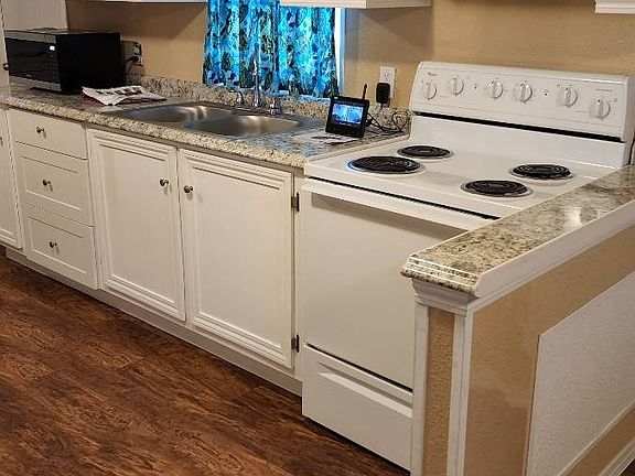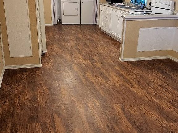 Totally renovated 2 brm 1 full bath with indoor laundry rm with washer and dryer. New laminated flooring, freshly painted. Lot rent is only $589 base. Add water, sewer etc. NO neighbors in rear of home. Backyard patio for grilling . Picnic table stays as well as security cameras. Smaller dog permitted. Great and friendly management. Ask for Mary Narucki to see this home.