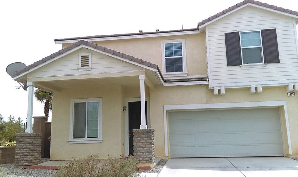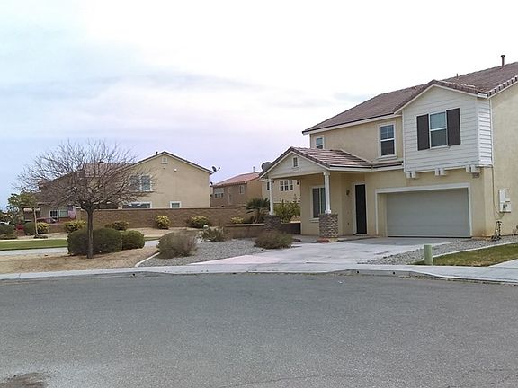 Your search has ended! In this nice 2-story, 5 bedroom, 2.5 bath home on a cul-de-sac street located in the beautiful Mission Crest community of Hesperia. Front exterior has desert landscaping and stone/wood pillars. Interior first floor features an open floor plan with living room, dining area, and kitchen which flows into a cozy family room with tiled fireplace and half bath. Kitchen has tiled counter tops, doubled tiered island with eating area, lots of cabinet/storage space, plus an additional dining area with glass slider. Second floor features master bedroom, master bathroom with double sinks, oval sunken tub, separate shower, walk-in closet, four more bedrooms, full bathroom and laundry room. Spacious backyard with circular cemented patio area and pebbled garden landscaping. Neighborhood walking trails. Easy freeway access, close to schools, restaurants, shopping and Malibu Park. Sold As-Is. Some discoloration in the linoleum flooring in the master bathroom and downstairs half-bath; that said, this home is still a great buy, make an offer and let's open escrow!
