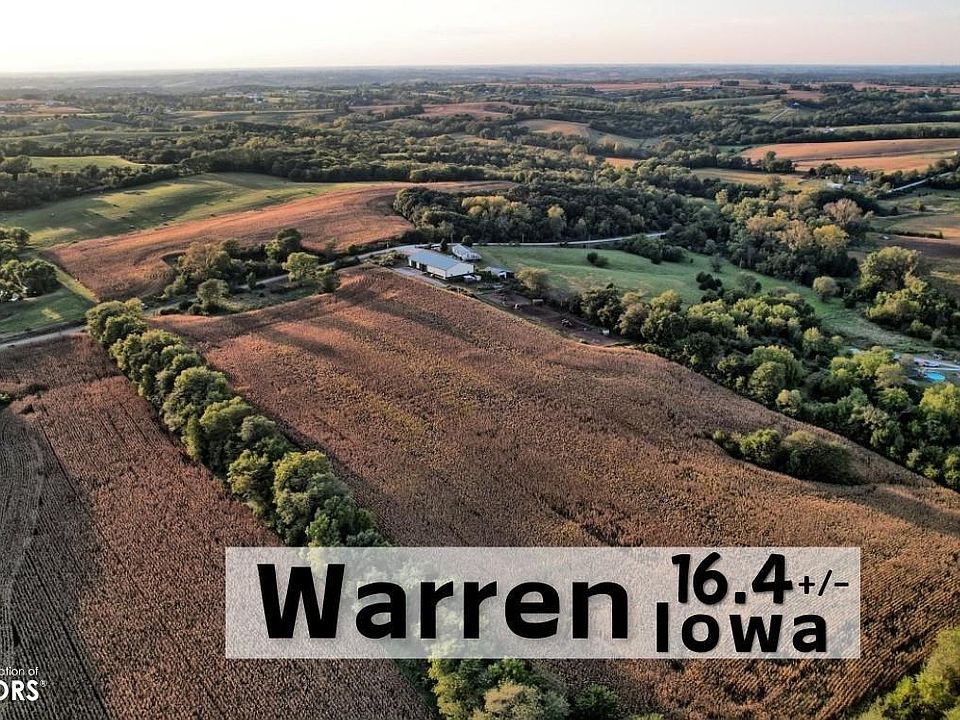 This 16.4 acres +/- Warren County, Iowa property has the unique combination of high quality tillable acres income, beautifully situated potential home-build sites, and ultimate seclusion at the end of an “A” level gravel road, yet just a 3 minute drive from pavement and under 9 miles from Indianola! With lovely views of rolling terrain, crop fields, peace and quiet, and hunting opportunity out the back door, this property would be a very nice location for a primary residence within easy commute distance to work in Des Moines metro. It would also make a nice hobby farm, or keep it in crops with cash rent income! Rural Water and Electric are both available at 130th Avenue. In 2025 there are 11.4 acres being cash rented by a local farmer for $210/acre ($2,394/year). The farm lease has been properly terminated and currently the farm lease is open for 2026. The tillable acres have a CSR2 average of 59.2, with predominantly Ladoga silt loam soils. Last but certainly not least, Warren County (Iowa Non-Resident Deer Zone 5) of course has great Deer and Turkey hunting, and being able to have hunting opportunities right out the back door of your home is especially convenient. There are several locations that would make for nice hidden food plots, or to leave some standing corn and beans for late winter hunting. Contact Listing Agent to set up a private showing!