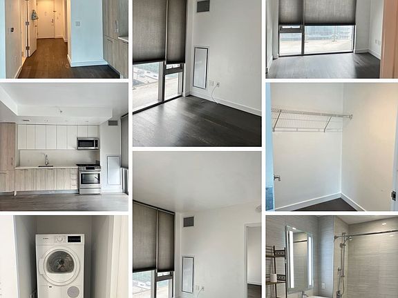 One big living room with large windows and balcony, one square private room with walk in closet and large window, view with garden view, central air flooring type hardwood, open kitchen with Bosch electrical , dishwasher dryer washer in unit.