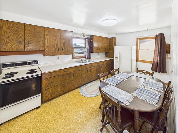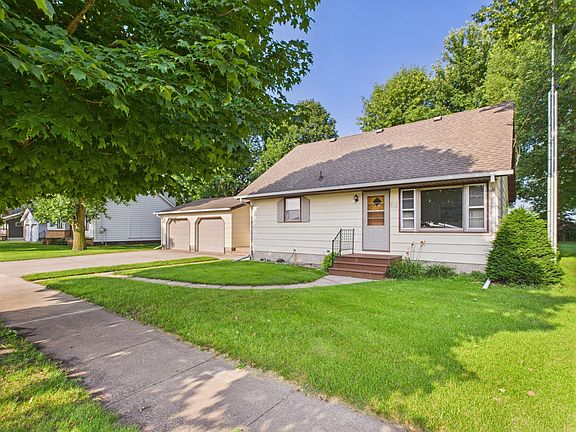 Check out this 4 bedroom home in good condition with spacious main level featuring a large foyer, primary bedroom and laundry room for one level living, hardwood floors, full bathroom, maintenance free siding, newer shingles and water pump, 1 year old forced air furnace, full basement with plenty of room for storage or add additional living space. Upper level offers two large bedrooms plus a bathroom roughed in. Attached two stall garage backing up to open farm fields. Same owner for 70 years who took excellent care of this home. Come check out today.