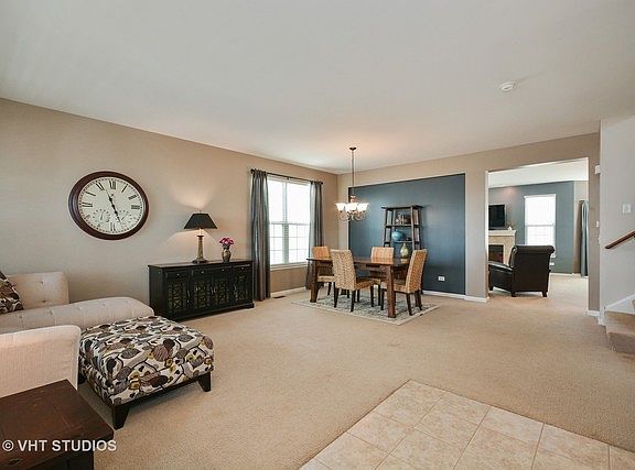 This beautiful home features an open floor plan, first floor den, spacious bedrooms & more! The large living room combined with the formal dining room is perfect for entertaining! The kitchen is flooded with light & equipped with stainless steel appliances, tons of cabinet space, & large eating area. Kitchen opens to the lovely family room that features a wood burning fireplace. The office has a french door for privacy & view of the pond. The extra large master suite has a spacious walk in closet & private luxury bath. Enjoy the outdoors on your private deck or on the patio while enjoying fire pit. The basement is full of possibilities! Great storage and so much room to create whatever your heart desires. The bathroom is already roughed in! Brand new carpet on the first floor. The neighborhood has something for everyone: 3 miles of walking trails, parks, and fishing ponds. Great location! Great home! Truly a must see!