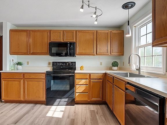 Welcome to Liberty Commons, your next community to grow in! This comfortable townhome is move in ready and has recent updates including flooring, lighting and appliances in the last 3 years. The first floor features a spacious kitchen, oversized & open living/dining room, and a half bath with tons of storage. The 2nd floor includes a primary bedroom with 3 closets and a cathedral ceiling, a 2nd bedroom with two closets, and a full bath with full laundry for the ultimate convenience. Enjoy nature with your morning coffee on the updated deck looking out onto a wooded backdrop. One deeded parking spot and one other unassigned space available on a first come, first-served basis. Quiet neighborhood with walking trails and shopping, conveniently located near Routes 190 & 2. One cat is allowed. Quick closing possible. All offers are due by 2pm on Monday May 22nd. Please allow 24 hours for a response.