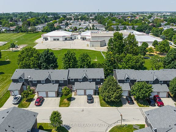 Welcome to this beautifully maintained 3-bedroom, 2-storey townhouse in a quiet, family-friendly complex, backing directly onto Bonaventure Meadows Public School - offering privacy, green space, and a true sense of community. The main floor features a spacious front entry, an updated 2-piece powder room (2018), inside access to the single-car garage, and a large laundry room. The kitchen is finished with modern grey cabinetry, stainless steel appliances, and ample storage and prep space. It opens into a bright living and dining area with oversized rear windows and updated vinyl plank flooring - perfect for everyday living and entertaining. Upstairs, you'll find three generously sized bedrooms, including a huge primary with double closets and plenty of space for a king-size bed. The 4-piece bathroom was tastefully updated in 2018.The fully finished basement offers even more living space with a large rec room, durable vinyl plank flooring, and a separate office area - ideal for working or studying from home. Outside, enjoy a private, partially fenced backyard with a spacious patio over looking the school yard behind - no rear neighbours and plenty of open space! This fantastic location puts you just 6 minutes from Highway 401, 10 minutes to downtown London, 9 minutes to Fanshawe College, and 18 minutes to Western University. Plus, you are close to major shopping, parks, transit, and more. Move-in ready and full of value, don't miss your chance to call this one home!