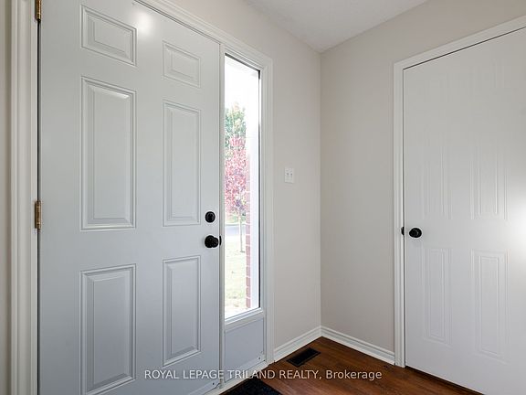 Welcome to this wonderful end unit, 2- Storey, 3 Bedroom townhouse located in one of East London's most family- friendly complex's. The main level boasts an inviting foyer, interior garage access, a powder room, kitchen and a very spacious living/dining area with fresh paint and brand new carpet. Step onto the freshly painted deck and enjoy a quiet cup of coffee or a barbeque with friends. Upstairs, you'll find three bedrooms including a huge primary and 4 -piece bathroom. The lower level has a large recreation room with fresh paint and new carpet, perfect for family movie nights. This beautiful townhouse is in close proximity to shopping, schools and the 400 series highways, this is an opportunity you won't want to miss!