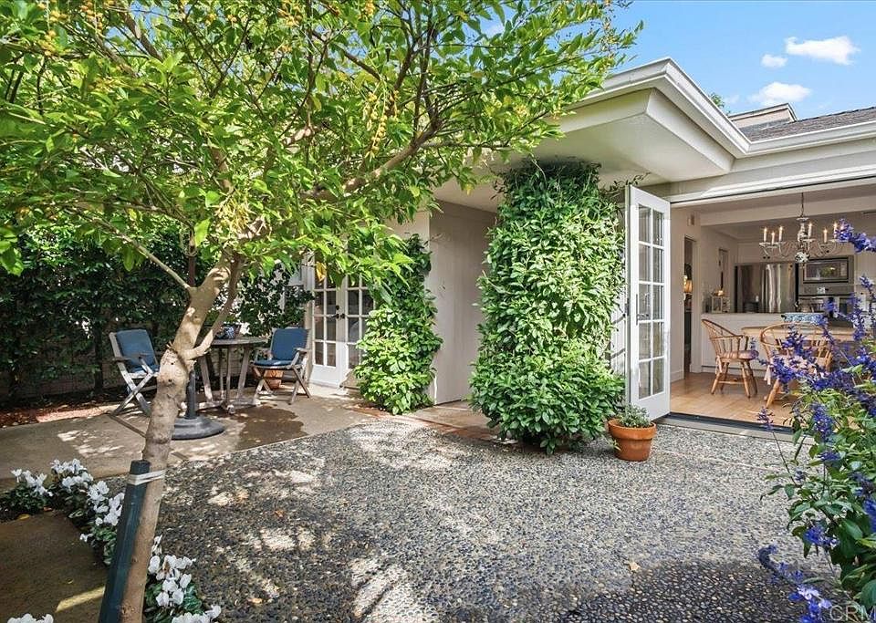Welcome to this absolutely enchanting home! From the moment you enter the gated courtyard the tone is set....you will be greeted by vibrant flowers and trees that were thoughtfully chosen for their year-round decorative beauty plus there is even a very charming potting shed! This single level two bedroom, two bath home exudes a timeless elegance and yet is very warm and inviting. Some of the many features include wide plank White Oak floors, Carrara Marble vanities and 5 sets of French doors that lead out to the tranquil patios. The sunny and bright kitchen offers stainless appliances, granite counters, glass cabinets and a spacious breakfast nook. The spa-inspired bathrooms also feature beautiful Carrara marble tiled showers. This lovely home is an end unit and situated next to the park-like greenbelt. There are garden views from every window and located just steps to the La Valle Club Resort and the community pool. Don't miss this opportunity to own a single level, quality home in such a fantastic location! A true Gem!