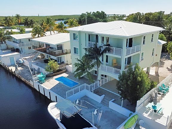 Indulge in waterfront luxury in the heart of Key Largo! This exquisite home seamlessly blends security with elegance. As you step inside, you are greeted by floor to ceilings windows and opulent marble flooring that accentuates the spacious living areas. The gourmet kitchen is a chef's dream, outfitted with top-of-the-line stainless steel appliances and a convenient central vacuum system. Entertaining is a breeze as the dining room and living room flow effortlessly, leading to a balcony offering breathtaking views of the serene canal. Retreat to the second-floor master suite, where luxury knows no bounds with a lavish ensuite bathroom and balcony perfect for savoring morning coffee or evening sunsets. Two additional bedrooms on the third floor offer ensuites for ultimate comfort and privacy, while an airy upstairs living room provides a versatile space for relaxation or entertainment. Step outside to discover an oasis of outdoor living, complete with a sparkling pool equipped with both a heater and chiller for year-round enjoyment. Surrounding the pool is lush landscaping, creating a tropical paradise in your own backyard. Boating enthusiasts will delight in the 60 feet of dockage, complete with a 16,000-pound boat lift, offering easy access to the open waters of the Florida Keys.This exceptional home is outfitted with a 17KW whole house generator and inground propane system, ensuring uninterrupted comfort and peace of mind during any weather event. Additionally, the ground level, situated above flood, features a large entertainment area, a convenient bedroom and bathroom easily accessible from the pool deck, perfect for accommodating guests or as a private retreat. With great ocean access and a prime location for paddleboard and kayak enthusiasts, this home offers the quintessential Florida lifestyle. Phenomenal seller financing terms available, offering a unique opportunity to make this dream home a reality!