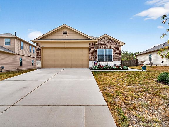 0.22-acre lot • Single-story Madison plan • Smart home package • 2 min to I-35, 3–5 min to H-E-B Plus, Target & downtown Kyle • Under 10 min to Plum Creek Golf Course & Lake Kyle Park Move-in-ready 4-bedroom / 2-bath home on a rare oversized lot in Creekside Village! Built in 2019 with 1,732 sq ft of single-story living space and 9-ft ceilings, this open-concept Madison floor plan offers comfort, efficiency, and modern upgrades throughout. The kitchen features granite countertops, espresso cabinetry, a Kohler Guild pull-down faucet with three-function sprayhead, stainless-steel appliances, and motion-sensor under-cabinet lighting for added convenience. The spacious dining area and living room flow seamlessly for easy entertaining. The private owner’s suite includes a large walk-in closet and a custom bathroom with a 5-ft walk-in shower, marble-style countertops, and custom-painted cabinetry that adds a designer touch. The secondary bath features matching finishes and open shelving for extra storage. Vinyl flooring extends through the main living areas with carpet in bedrooms for comfort. Energy-efficient features include radiant barrier roof decking, R-38 attic insulation, and double-pane windows. Smart home system includes keyless entry, video doorbell, and climate control via touchscreen panel. Enjoy the expansive backyard with a freshly stained fence that gives the outdoor space an updated, polished look, and a covered patio perfect for weekend BBQs, garden projects, or a future pool. Fresh landscaping in front and back enhances the home’s curb appeal. Includes Zillow 3D tour and floor plan viewer for virtual walkthroughs. Fantastic location just minutes to restaurants, shops, and parks, with Austin only 30 minutes north and San Marcos a short drive south. 131 Coleto Creek Loop delivers space, value, and privacy you won’t find in most new builds — a must-see in Kyle’s booming corridor!
