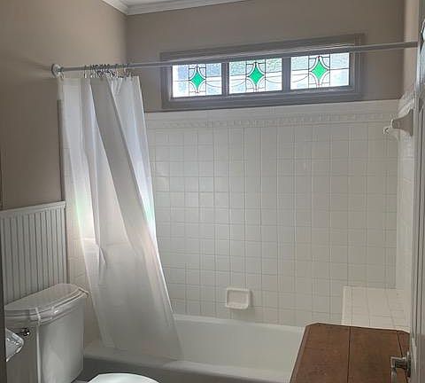 The full, updated bathroom has tons of vintage charm, with a tub/shower combo with tile surround, and a stained glass transom window. Upgrades to home include updated ceiling fans, electrical, paint, and so much more. If you are looking for a prime Habersham Village home, this is the place.