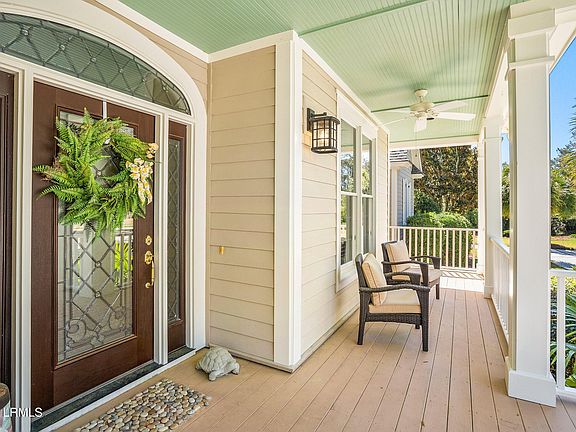 Pack your bags and come on down to the Lowcountry! This exquisite Dataw Island home is on Jenkins Creek, a tidal creek with incredible, expansive views across to Polowana Island. You can enjoy the view from everywhere inside the home with the enormous windows overlooking the landscaping, 220 ft. dock, floating dock and creek. Take your boat out from your own dock to explore the many waterways. Or, take in the view and the breeze year-round from the brand new porch that is outfitted with remote controlled, retractable screens, infrared heaters, clear-view rails, and blue stone floors. The home is large, with room for extended gatherings, yet it lives very comfortably for just you with primary and guest rooms on the first floor. Upstairs are 3 guestrooms and 3 full baths. Enjoy the privacy of a finished studio over the garage, in addition to the dedicated office space downstairs. The storage in the home is generous and the storage closets are all cedar lined. You will find the home and yard afford much privacy and the meticulous landscaping is full of flowers and several producing fruit trees. The gourmet kitchen is newer and outfitted with Bosch appliances for your cooking experience - or decide instead to eat at the Club after golf or tennis! New roof - 2024. Dataw Island Club membership required. Furniture is available to be sold. This material is based upon information, which we consider reliable, but because it has been supplied by third parties, we cannot represent that it is accurate or complete, and it should not be relied upon as such.