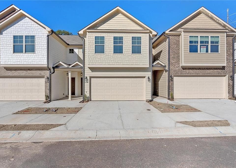 Beautiful brand new end unit townhouse in Camp Creek Elementary/Trickum/Parkview District. Pictures are photos of decorated model of the same floor plan. Open floor plan with alminate flooring on the entire main level, all wood soft close cabinets with hardware, granite kitchen island, subway tile backsplash and custom kitchen lighting. Crown molding on main level. Free blinds and garage door openers. Owner bedroom is oversized and large enough for sitting area, trey ceiling, custom lighting, ceiling fan with light kitchen and bright windows. The owner bath features 2his and hers sinks, separate shower and tub, tiled floor and granite top on custom cabinets. Huge owner walk in closet. Secondary bedroomsa have double closet doors to provide more storage, switches for ceiling fan and light kit.