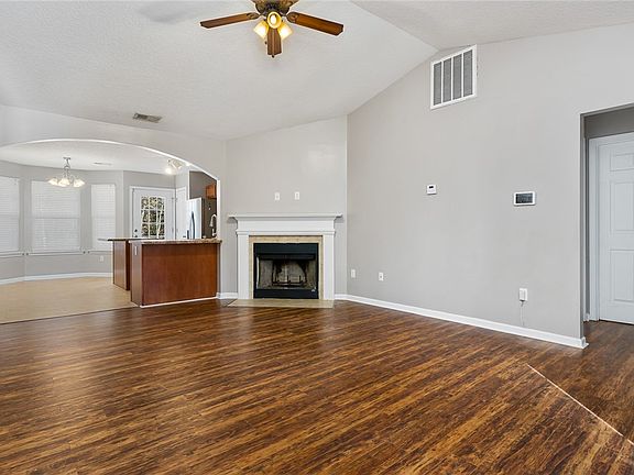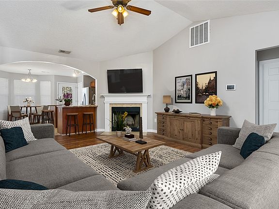 - Tray Ceiling(s), Ceiling Fan(s), Cathedral Ceiling(s), Dual Sinks, Fireplace, Garden Tub/Roman Tub, Laminate Countertop, Bath in Primary Bedroom, Main Level Primary, Separate Shower, Vaulted Ceiling(s), Walk-In Closet(s), Walk-In Shower, Window Treatments