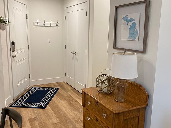 Seeking a furnished mid-term rental that perfectly caters to your needs in downtown Traverse City? Your search ends here! This new in 2019 condo offers the ultimate in convenience, allowing you to access all downtown has to offer with ease. From North Peak Brewing Company in the West to The Cook's House in the East and the serene Clinch Park and Marina to the North on the west arm of Grand Traverse Bay, everything is within walking distance. Discover the sophistication of our garden-level unit, thoughtfully designed for the discerning traveler. The "Jill" Capri condo blends vintage and contemporary elements seamlessly, creating an elegant and comfortable living space. The open-concept design encompasses a spacious living area, dining space, and a fully equipped kitchen, providing the ideal setting for preparing your own meals. Our accommodation offers a peaceful night's rest with a well-appointed bedroom featuring a queen-sized bed. Additionally, a queen-size sofa sleeper in the living area accommodates additional guests or colleagues. Stay productive and connected with complimentary Wi-Fi and a SmartTV, making it easy to stay on top of work while you're away. During your downtime, unwind with a selection of board games, playing cards, and captivating reads, ensuring that your stay is both productive and enjoyable. Rent includes internet/wifi. Parking permits are available for purchase in the Old Town Parking Garage located steps outside the entrance door for $35 or $55 per month. This fully furnished, garden-level, one-bedroom apartment offers comfort and convenience at the south end of Downtown. 6 to 12 month rentals available, this space is move-in ready. Inside, you'll find: * Bedroom A cozy queen-sized bed, blinds, a closet, dresser and nightstands. * Living Area Relax on the sofa, stream your favorite shows on the internet-ready TV, and enjoy meals at the 4-person dining table. * Kitchen Fully stocked with basic cookware, plus a toaster, coffee maker, and microwave for convenient cooking. * Bathroom A large, stand-up shower Amenities you'll love: * Free Wi-Fi * Free In-Unit washer & dryer * Close proximity parking (Parking permits are available for purchase for $35 or $55 per month by the tenant from the City for the public Old Town Parking garage, located steps from the condo building entrance) Rental Terms & Policies: * Minimum stay: 6 months nights | Maximum stay: 12 months * Maximum occupancy: 2 persons * No smoking, vaping, or marijuana * No parties or events * No pets * Payment required by debit or credit card (monthly payments available) * One-time fees due at move-in: $500 refundable deposit and a $250 non-refundable cleaning fee. Tenant will provide their own linens and are responsible for regular cleaning.