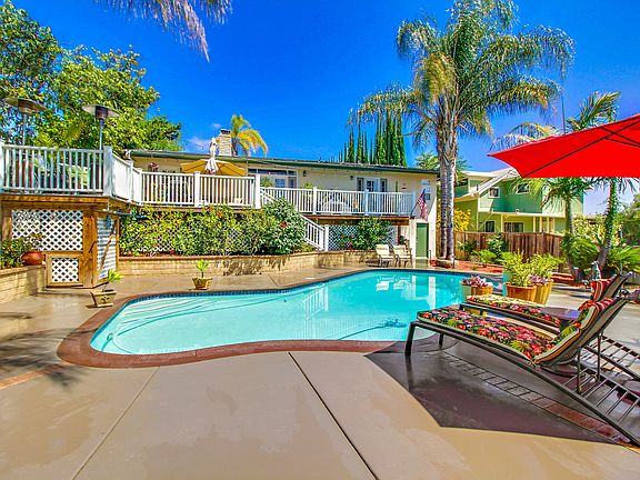 This is an amazing home and a terrific opportunity to live in the favored area of “Old Escondido.” As you enter the home, the cherry wood flooring leads you to the living room where you immediately want to talk about the animal footprints that have dried into the Saltillo tile floor. The retractable double French doors, with double side light windows beckon you to head out of doors to sit down and enjoy a resort type feeling, while sipping your favorite cocktail. Enjoy the out-of-doors entertainment area with an upgraded Trex deck which is weather-resistant, long lasting, and easy-to-care-for. And after you’ve relaxed, meander down the steps to enjoy an evening dip in your own solar-heated pool. This is truly your own resort in your own backyard. The carefully planned, manicured, xeriscape landscape allows you to immediately entertain. Have a barbecue and enjoy the rest of the summer with family or friends. The lot also has an extra area past the pool for a shuffleboard, volleyball court, butterfly garden, veggie garden or your own creation. The master bedroom has it’s own private bathroom, spa tub, separate shower, and a large walk-in closet. The other two bedrooms offer privacy and space for your family members; or turn them into a guest room or a home office. This home looks and feels like your own private retreat. Whether it’s a summer afternoon or a cozy winter evening, the pleasant dual fireplace offers you warmth or romance and plenty of room to share your home or to enjoy your privacy. And, best of all the kitchen will please any serious chef; especially one who would love to own a self-cleaning commercial stove with 6-burners, an indoor grill and double-sized oven a second sink for another chef to use, a pot-filler, extra pantry cupboards for all your spices and ingredients to prepare your favorite meals. You have the most valued home for sale in Old Escondid and this gorgeous home is calling your name.