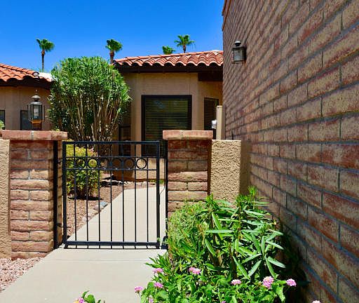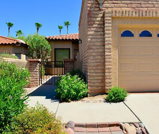 GREAT NEW LOW PRICE! Clean as a whistle! Beautiful Oro Valley Country Club townhome perfect for year-round or seasonal living. Charming and comfortable, this open great room plan features a large eat-in kitchen with a lovely bay window and all appliances included. Bright & airy home has vaulted ceilings, 4 skylights, 2 large bedrooms and 2 baths. Tile in living areas and newer carpet in bedrooms. Abundant closet storage and a 2-car garage. N/S exposure w/a gated front courtyard entry. Private and Quiet backyard with a covered patio extending the length of the home. This classy and quaint enclave of well-maintained homes includes its own rec center with heated pool and spa! Located just steps from the newly-built OVCC Clubhouse with amazing golf & social memberships available.
