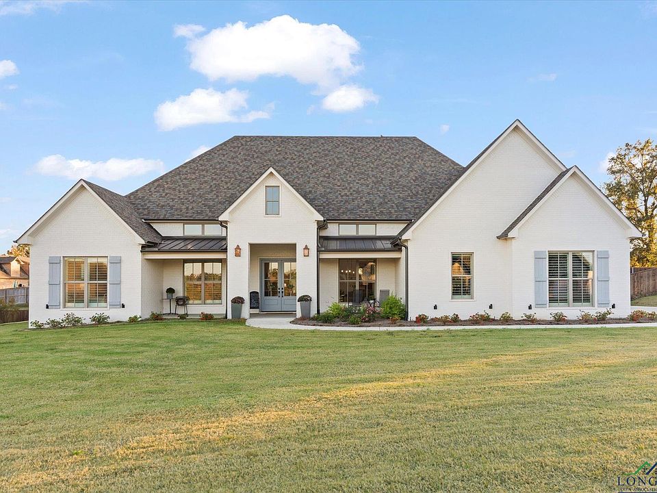 Stunning 2024 Newland Properties home with designer finishes curated by WG Interiors. Located in the gated Hillcrest Trails community, this home offers a Longview address with award-winning Hallsville ISD schools. The open-concept layout features a gorgeous kitchen with quartz countertops, large island, gas range, wet bar with wine fridge, and a butler’s pantry. Beautiful dining room off the entry, high-end lighting, hardwood floors, custom draperies, and plantation shutters elevate the home throughout. The private primary suite includes a spa-like bath and a large walk-in closet with direct access to the laundry room. Additional highlights include a whole-home generator, two tankless gas water heaters, designer bathroom finishes, and a spacious 0.8-acre lot. Enjoy the oversized covered patio and a three-car garage. Luxury, comfort, and impeccable craftsmanship—PERFECTION!