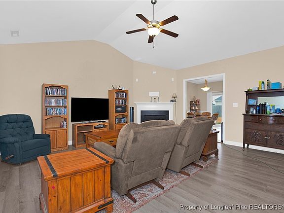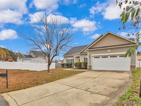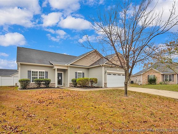 This beautiful 3-bedroom, 2-bath home is move-in ready and waiting for its next owner!! Nestled on a quiet cul-de-sac, it offers convenient access to Fort Bragg, Fayetteville, and I-295. Enjoy resort-style community amenities just a short walk away, including two pools, a splash pad, kiddie pool, gated playground with shaded pavilion, clubhouse, fitness center, soccer field, two volleyball courts, fishing pond, community events, and more. Inside, the living room features newer LVP flooring, a cozy fireplace, and a cathedral ceiling. The attractive kitchen shines with laminate flooring, stainless steel appliances, a generous pantry, pendant lighting, tile backsplash, and a breakfast bar! The spacious owner's suite offers a trey ceiling, walk-in closet, garden tub, dual-sink vanity, and separate shower. The two guest rooms and guest bath are also generously sized! Outside, you'll find a large backyard with a privacy fence and patio — perfect for relaxing or entertaining.