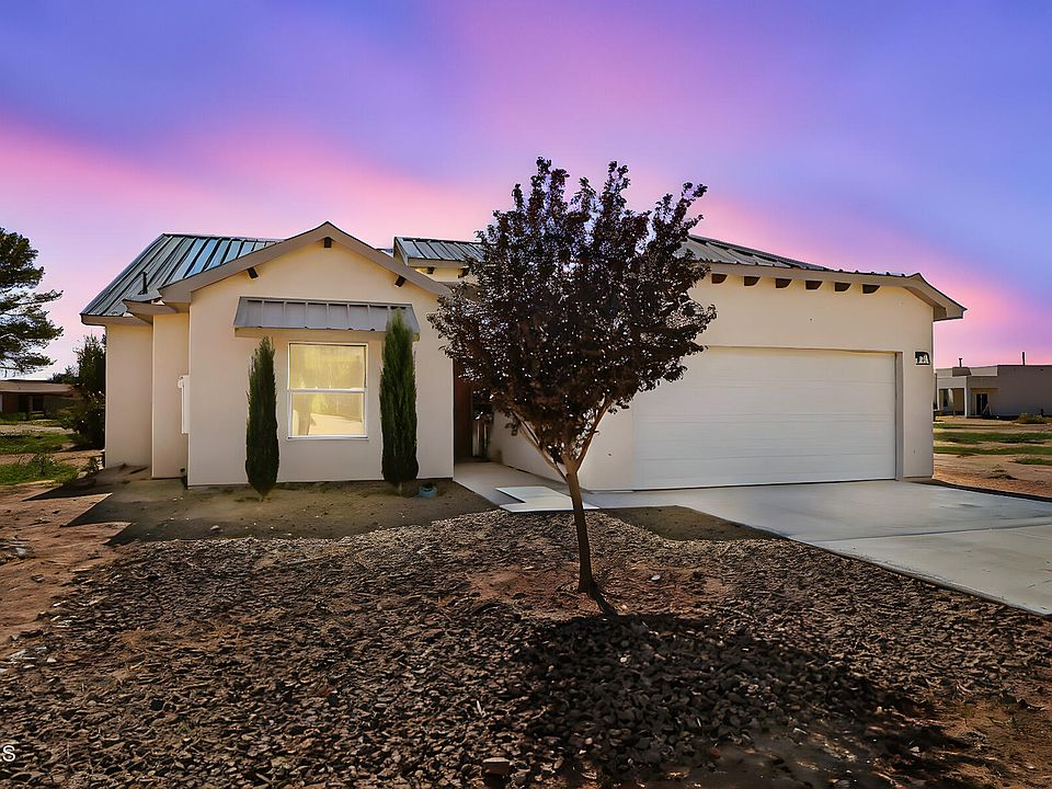 Welcome to this modern farmhouse custom build home, nestled on half-acre lot on a cul de sac. Boasting 3 bedrooms and 2 bathrooms across 1,907 square feet, this home thoughtfully blends comfort and style. Step through the front door and be greeted by high ceilings and an impressive open floor plan. The large living area with vaulted ceilings flows seamlessly into the beautiful kitchen, featuring granite countertops, stainless steel appliances, and abundant cabinetry. Enjoy meals in the designated dining area, highlighted by picture windows that frame outdoor views. Sliding doors open to a generous backyard, inviting endless possibilities for outdoor entertaining or relaxation among green grass, trees, and charming rose bushes--perfect for enjoying breathtaking sunsets. The primary bedroom is spacious, with a walk-in closet and a luxurious bathroom offering double sinks, a long granite countertop, tiled shower, and striking vanity mirrors. Two additional bedrooms provide ample space and comfort, each