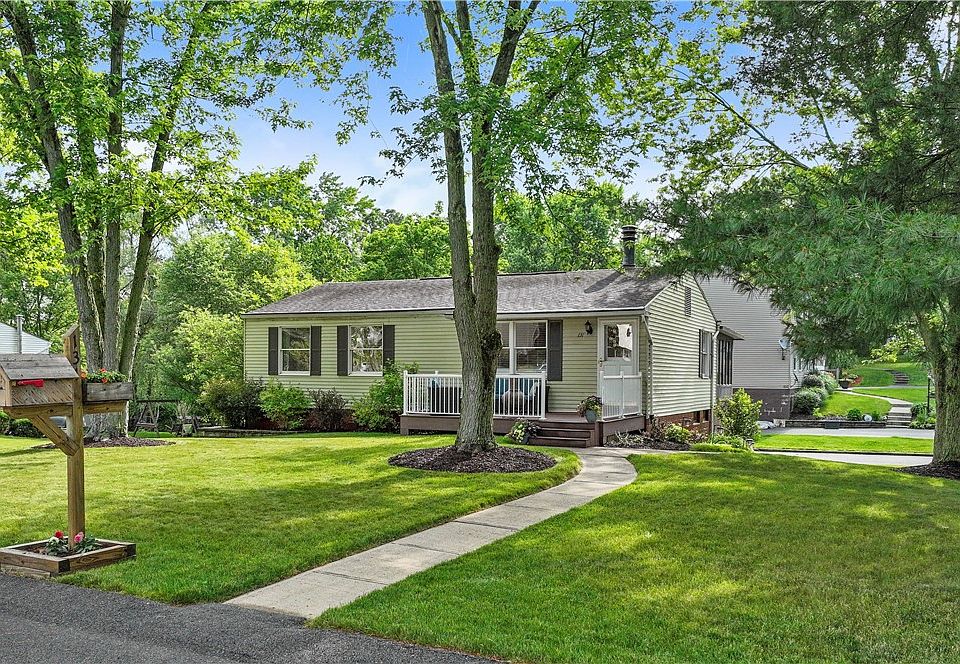 Welcome Home to 131 Fox Run Road where you will discover an updated ranch style home bursting with charm and nestled on a picturesque corner lot with mature trees. Step inside and be greeted by a cozy living room that flows seamlessly into an updated eat-in kitchen, dazzling with quartz countertops and an abundance of natural light. Just off the kitchen, you’ll find a bright and inviting sunroom - ideal for sipping morning coffee and a good book. Outdoor living shines with a new Trex front porch, perfect for unwinding around the fire, and a back patio designed for grilling and bonfires. The beautifully landscaped yard adds to the home’s curb appeal, and the long driveway ensures plenty of parking. Flexible living spaces include a multi-use den on the lower level, plus an abundance of storage throughout.
