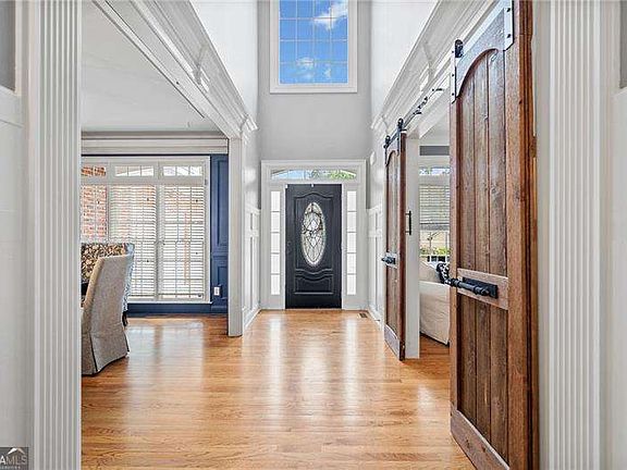 Looking for a beautiful, enormous house in the golf course/swim/tennis community of Bridgemill? Then look no further and own this gorgeous home with over 6800 sq feet that has a theater room with luxurious leather seating, wine room, chef's kitchen and incredible primary suite with enormous custom closet! This is a spectacular home that is even more impressive in person! This gorgeous executive brick home has everything you need! The rocking chair front porch is inviting as you enter a grand foyer flooded with natural light. The millwork in this home is superb with custom wall molding, trim and even handcrafted barn doors for the office. Enjoy hardwood floors throughout the home with the oversized dining room that also showcases custom millwork and lighting. The family room and keeping room have gorgeous stone fireplaces with built in bookcases. The massive breathtaking windows in the family room offer a gorgeous view of a private backyard. Enjoy entertaining in the chefs' kitchen with custom cabinets and a massive marble island that is a showstopper. A walk-in pantry, gas stove top, double oven, and second office make this kitchen a delight to entertain while enjoying even more living space in the large open keeping room. Open the doors to a deck for barbequing and more entertainment as you view this lush private backyard that is fully fenced in. Bedroom ensuite with full bath on first floor offers privacy. Upstairs is an owner's retreat with a massive bedroom, including custom millwork trey ceiling, 2-sided fireplace that joins to sitting room/office. The primary bathroom is extraordinary with whirlpool tub, large doubled headed shower with separate and highly desirable beauty room/vanity mirror. The incredible DREAM closet that is the size of a 3-car garage offers a sitting/dressing area to lounge and additional closet for locked storage for securing valuables. A convenient and custom laundry room awaits on the second floor which offers plenty of storage and can be used for crafts as well. Three additional bedrooms are a part of the upstairs space, with two bedrooms sharing a bathroom and the third offering a private bath. Daylight basement features custom wine storage cabinetry and elegant wine tasting room. Enjoy the huge game room that can hold a pool table and ping pong table. Step inside the custom theater room with surround sound for a "night at the movies". Guests can enjoy staying on this terrace level in the bedroom with hall bath or turn this room into a custom gym! Outdoor entertainment includes a custom-built fire pit, deck, lighting and even a hand painted jumbo chess board for game enthusiasts! Other amenities of this property include a 3-car garage, smart tech security and NEST thermostats, and upgraded outdoor lighting. Bridgemill is a paradise of outdoor activities with a golf course, aquatic center with water slides, 28 tennis courts, pickleball, gym, playground and pavilion and restaurant. An active neighborhood social calendar awaits you and Lake Allatoona is only a few miles away! Don't miss this great opportunity to own this beautiful home in Bridgemill! ( HOA dues are required but private membership to Bridgemill Athletic/Golf Club offered but not mandatory.)