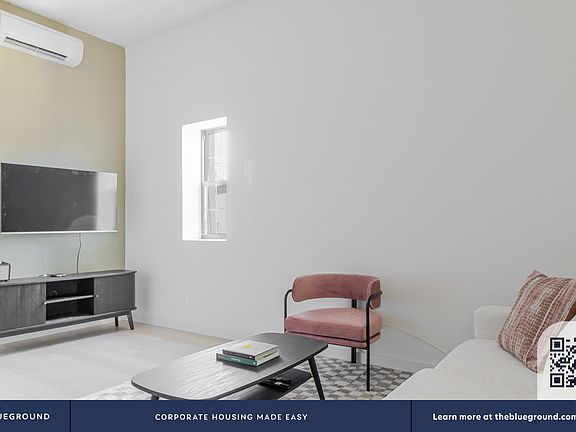 Show up and start living from day one in New York with this beautiful two bedroom Blueground apartment. Youll love coming home to this thoughtfully furnished, beautifully designed, and fully equipped Greenpoint home. (ID #NYC1896) The advertised rate of $4,850/month is the lowest available price, based on a 12 month(s) stay with a move-in date of December 15, 2027. Rates vary depending on the duration of stay, season, and other parameters. For exact pricing and additional pricing components, please visit our website and enter your desired move-in and move-out dates. The rate is applicable when billed upfront; it can be higher if billed in multiple payments. Brokers are welcome to reach out. Were you looking for an unfurnished lease? Try Blueground instead and upgrade from unfurnished to furnished living: - Furnished at rates comparable to unfurnished - No setup or furniture costs - save thousands - Move-in ready - save time, just bring your suitcase Designed with you in mind Thoughtfully designed with bespoke finishes, modern furnishings,and a fully equipped kitchen,youll enjoy that Im home feeling with this Blueground apartment. Whether youre lounging in your stylish living room streaming the latest and greatest entertainment on the smart TV or premium wireless speaker, or getting some well-earned rest on the superior quality mattress with luxury linens, youll fall in love with everything this Greenpoint apartment has to offer.This apartment also offers in-apartment laundry. Sleeping arrangements - Queen Bed, 63in/160cm - Queen Bed, 63in/160cm Amenities Building amenities unique to this two bedroom apartment include an on-site - Dryer - Washing machine - Pets allowed Arrival and ongoing support The entire apartment is yours to enjoy! Throughout your stay, youll have access to our Client Experience team through the Blueground App. You can schedule additional cleanings, submit maintenance requests, and view our neighborhood recommendations with just a few taps. Well share all details upon confirmation of your stay. Ideally Located This furnished apartment is located in Greenpoint, a historic Brooklyn neighborhood that is known for its eclectic food scene and quiet, tree-lined blocks. This lovely area is frequently used as a backdrop for TV shows, thanks to its proximity to Long Island City's Silvercup Studios. Greenpoint's food scene is concentrated along Manhattan Avenue, one of the neighborhood's major thoroughfares. You can find everything from world-renowned donuts to vegan comfort food to authentic Polish cuisine, as well as plenty of bars serving craft cocktails. On the weekend, head to Transmitter Park for gorgeous East River views or walk to trendy Williamsburg to check out hip boutiques and art galleries. Greenpoint is served by the G line of the New York City subway system. Other things to note This Blueground apartment has flexible lease options, allowing you to book it for one month, a year, or more. Pets are welcome, though weight limits and breed restrictions apply and may incur fees. Please keep in mind that this is a walk up building. Brokes CYOF. We take great pride in ensuring every photo displayed is shot in our own units with our actual furnishings. That said, we regularly refresh our decor and furniture arrangement, which may differ from whats pictured.