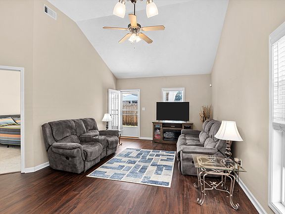 Cozy, well-maintained, with new carpet, Luxury vinyl Flooring, and fresh paint, this home is move-in ready! This 2-bedroom, 2-bathroom end-unit townhouse offers the perfect blend of comfort and convenience. Step inside to a welcoming foyer with hardwood floors, leading to a spacious great room and dining area with vaulted ceilings, creating an airy, open feel. The kitchen features a center island, pantry, and ample cabinetry for storage. A separate laundry room adds extra convenience. The primary suite boasts a walk-in closet and a private bath, while the additional bedroom is perfect for guests or a home office. Enjoy peace of mind with a security system and relax in the beautifully landscaped, sodded yard with a sprinkler system. The shadowbox privacy fence provides a private outdoor retreat. Additional highlights include: