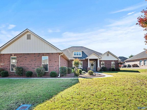OPEN HOUSE SUN 11/16 2-4 PM! Welcome home to this stunning brick rancher featuring 4BR/3BA's & an inviting open floor plan perfect for entertaining. Warm HW floors flow throughout main living areas, highlighted by elegant crown molding & cozy gas FP. Gourmet kitchen w/granite, SS appliances, gas range & rich cabinetry w/plenty of storage. Enjoy meals at the breakfast bar, in the breakfast room overlooking backyard or entertain in dining room w/trey ceiling. Office/flex room to fit your needs. Isolated primary retreat w/en suite BA & 2 walk-in closets! 3 add'l BR provide flex space for family & guests. Screened porch. 3 car garage. Minutes to Redstone Arsenal, HSV airport Town Madison & I565!