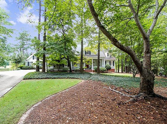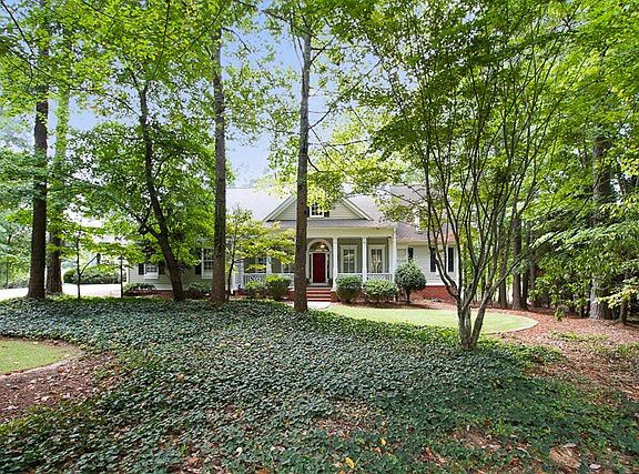 Southern Living Charm on lake with panoramic views. French doors open onto outdoor living room with stone fireplace and entertaining are overlooking lake. Open floor plan w/kitchen open to family room complete with custom wet bar and heart-of-pine floors. Finished basement w/bedroom suite completes this home.
