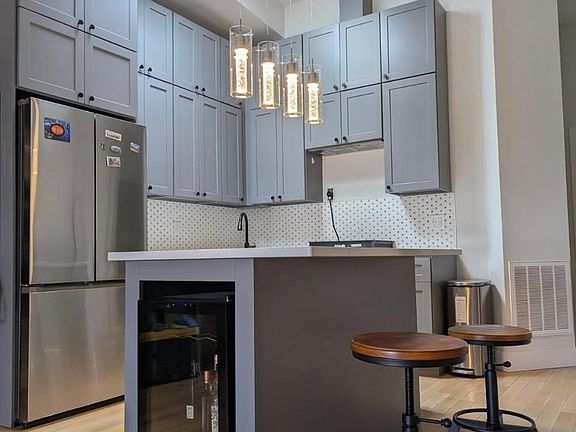 Beautiful and bright top level apartment in the recently renovated side by side multi-family home in red hot Jersey City Heights! This 3 BR 2 BA apartment features 13 foot high vaulted ceiling, skylight, an amazing open concept layout with European wood plank flooring, quartz countertops, stainless steel appliances, beautiful kitchen island with wine fridge, high performance 4 burner cooktop, brand new large multi use convection oven with air fryer, large enough for your Thanksgiving turkey, 2nd convection oven/microwave, nest thermostats and washer/dryer. Some photos don't include the kitchen island and additional kitchen cabinets which were installed later. Beautiful main hallway bathroom features double sinks and shower/tub combo. The Master BR features a modern style layout with desk nook for your work space needs, walk-in closet with built ins, nice master bath with double sinks, stand up shower and smart mirror. Don't forget the spacious, beautiful, private roof top with nice views for your entertainment needs! One garage space available. This is a can't miss location within walking distance to the path(10 minutes), parks, restaurants and easy access to downtown Jersey City! Don't miss it!