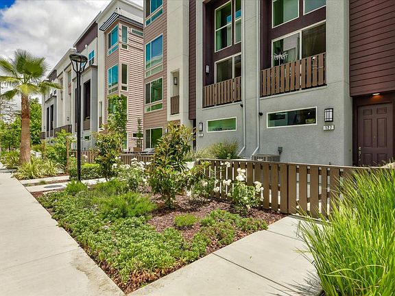 Exceptional elegant contemporary home built in 2017 and continually upgraded Thoroughly sanitized. Staged for sale.Walking distance to Cal train.Proximity to Target, Safeway, Starbucks, In-N-Out, Lowes, Costco, Westfield Oakridge Mall, and Kaiser Hospital. Easy access to Highway 101 and 85. Open efficient 3 BR (2 suites) /3BA floorplans. Cozy well landscaped front patio leads to an entry foyer. Downstairs full bedroom and full bath perfect for guest. Living room with cathedral high ceiling, tall window soaked with natural light and custom draping; open dining area; gourmet kitchen with granite counter tops, stainless steel appliances,5 gas burners stove. A mid-level mezzanine for office /den. 2 full size suites in the upper level with beautiful views and natural light,double sinks, comfortable sit down showers; adjoining to a convenient laundry. 2 zone air conditioning; alarm; attached 2 car garage with extra storage spaces.Fiber internet ready with Ethernet access.Very low HOA fee.