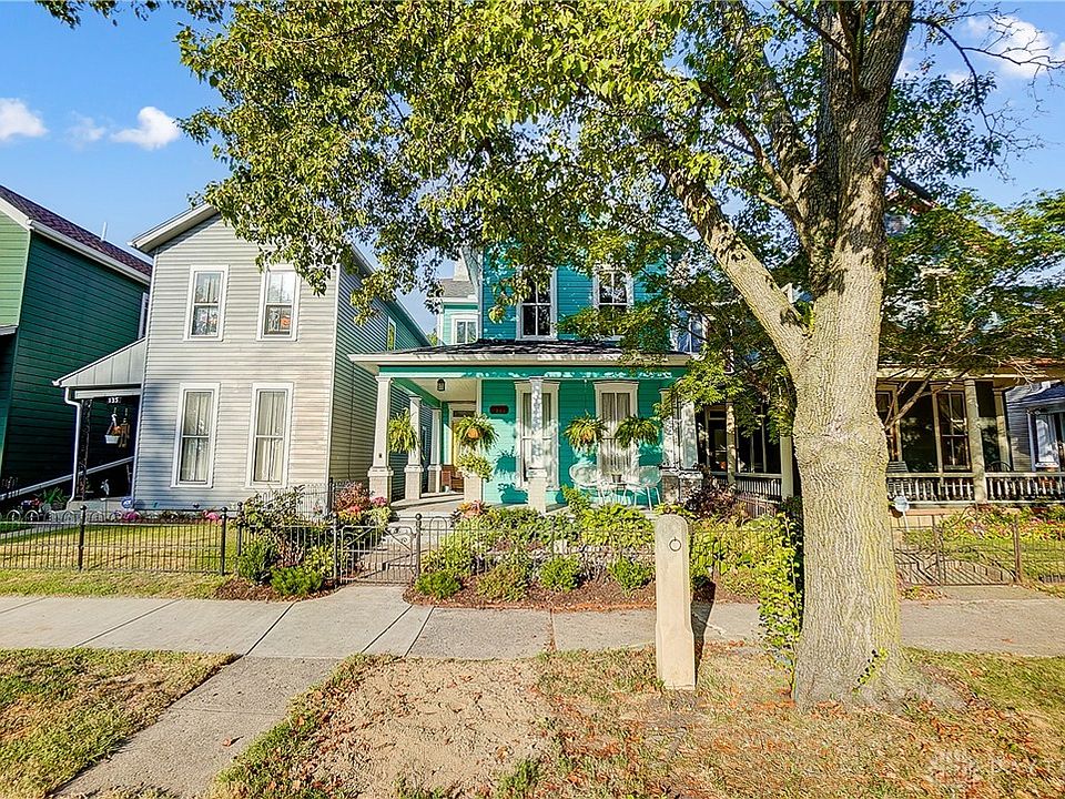 Located in the heart of the Huffman Historic District, this beautifully updated 2-bedroom, 1.5-bath home seamlessly blends historic charm with modern upgrades. Nearly every part of the home has been thoughtfully refreshed, while preserving original details like the hardwood floors, built-in china cabinet, transom windows, and unpainted woodwork that showcase its timeless character. The fully renovated kitchen features butcherblock countertops, and the spacious full bath offers a soaker tub, stand-up shower, laundry, and ample storage. Relax on the wrap-around front porch or entertain in the fully fenced backyard with a covered patio. The oversized 2-car garage with alley access provides extra space for parking or a workshop. Updated landscaping, including a native plant garden with over 100 species, completes this unique home with both modern amenities and historic allure.